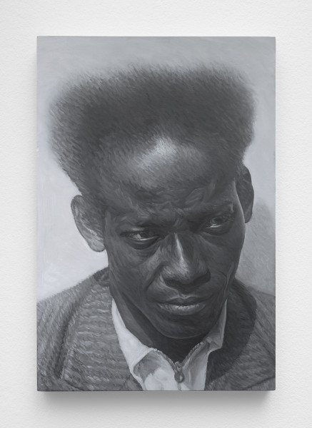 Just before the beginning of WWII, across the Atlantic Ocean in colonized Suriname, Anton de Kom began his work in the anti-Dutch movement by bringing together groups that opposed European imperialism and fascism. He pursued the notion of an independent Suriname, which soon resulted in his capture and exile to the Netherlands. Continuing his engagement in leftist politics and later joining the Dutch resistance after the German invasion of 1940, he was arrested in 1944 and imprisoned in Camp Vught, a concentration camp where he died one year later. Examining the human toll of resistance, artist Robles de Medina enters this narrative with an oil-on-panel portrait of Anton de Kom, based on a 1933 photograph by Piet Zwart currently in the Stedelijk Museum collection. Here, the act of replication imbues the work with the emotional weight of its subject: the painting seems to look back at the viewer, taking on a dominant role by confronting the observer and asserting a presence that implies agency.